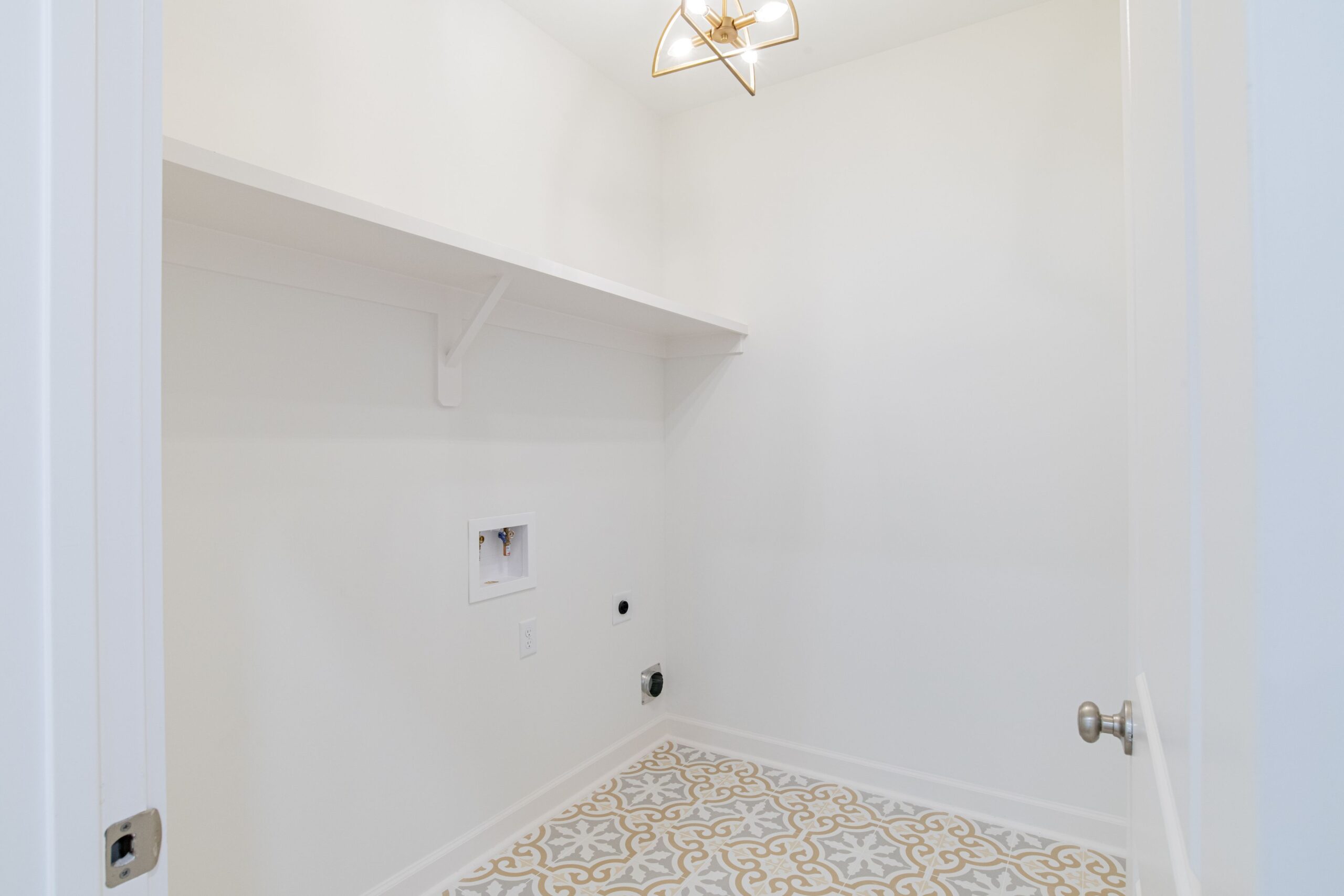 The adjoining laundry room, just off the suite, features decorative 8×8 tile flooring and thoughtful design for convenience.