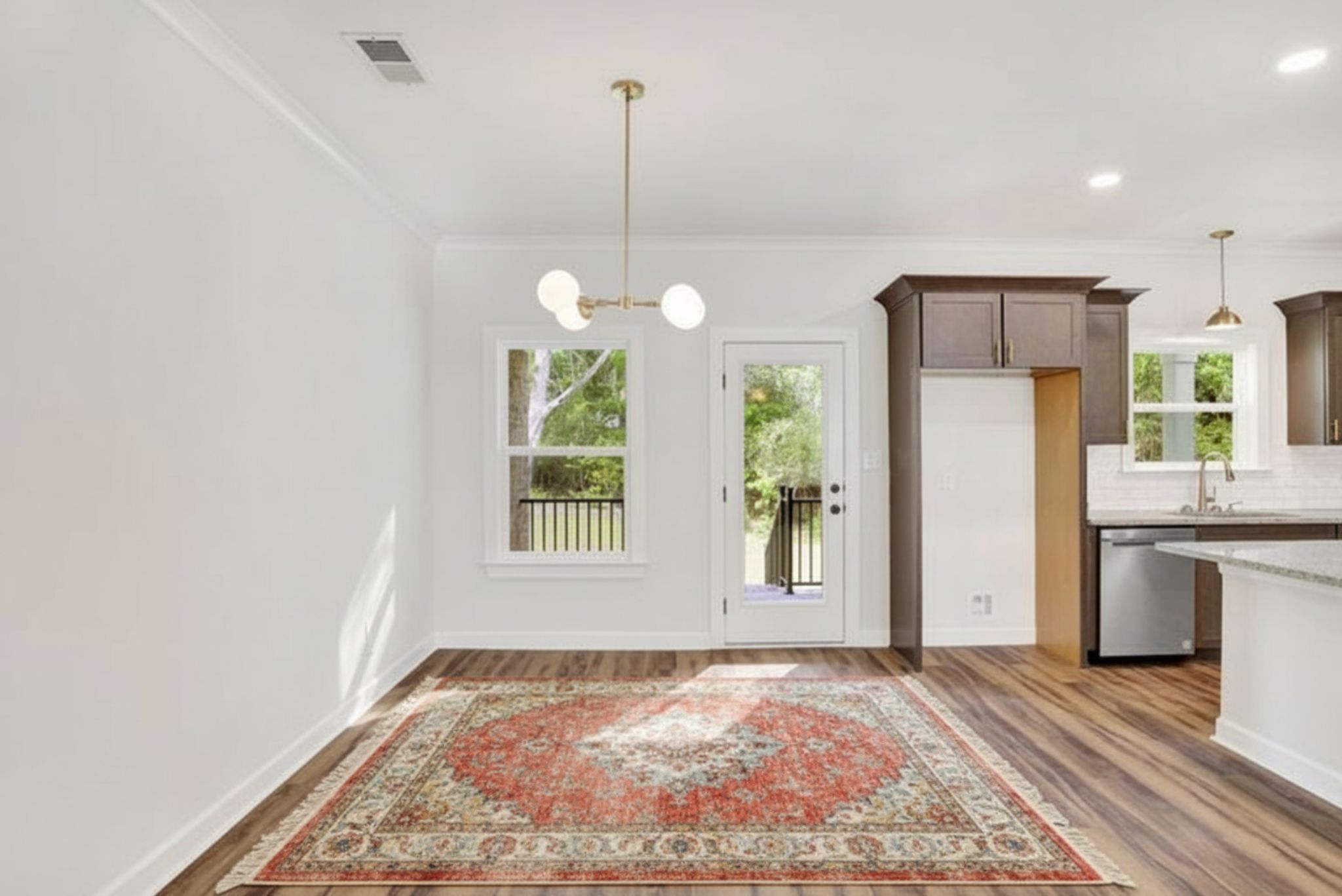 The adjoining dining area provides a warm, open space ideal for family meals or entertaining guests.