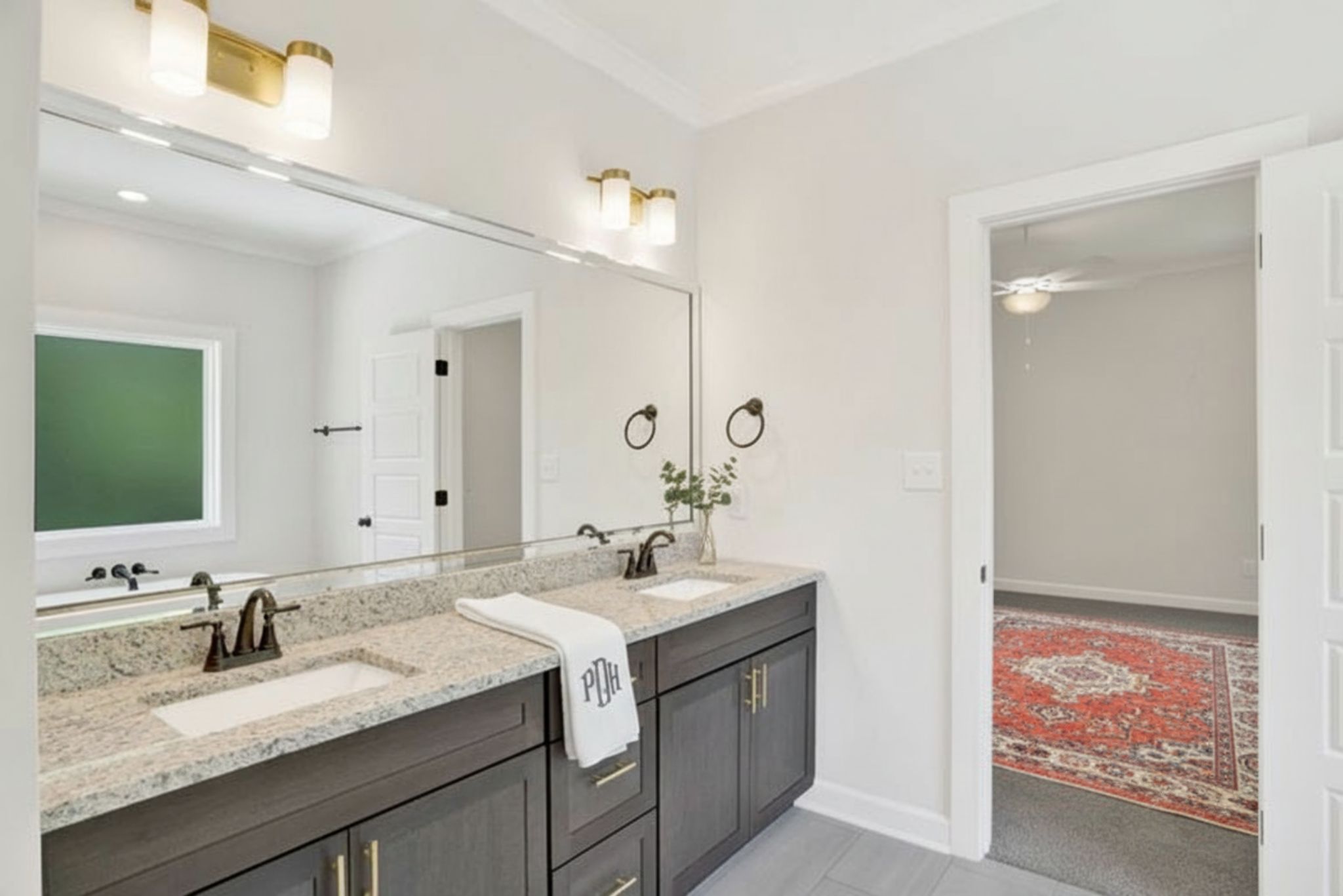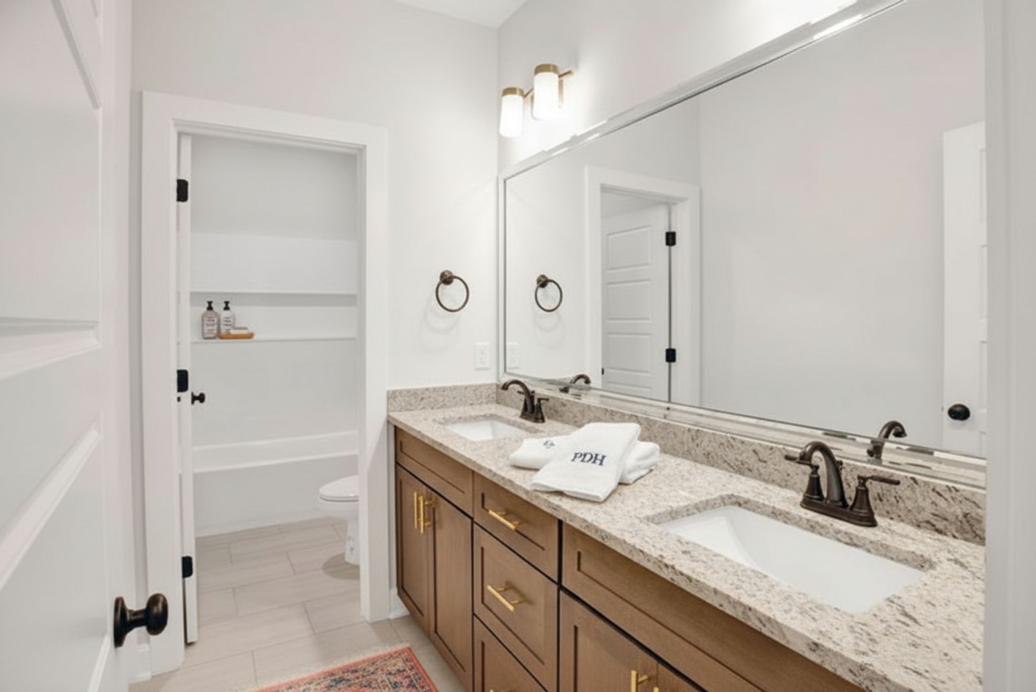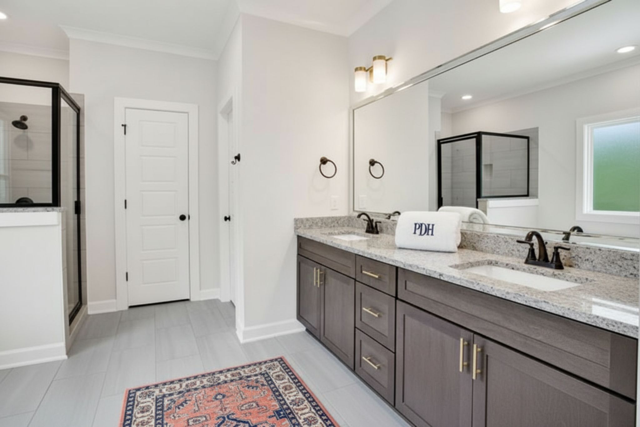 Double vanities with matte black fixtures